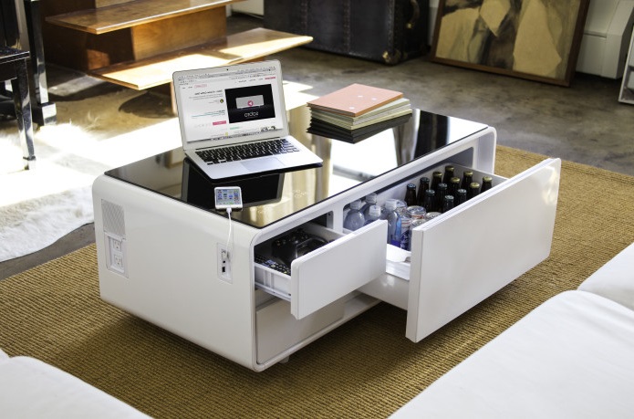 The word’s been shown many a smart cooler, but what about a smart coffee table? That day my friends, is at hand. Introducing the Storebound Sobro at a whopping $1,000. According to Storebound, this is no ordinary piece of living room furniture. Amongst other things, the Sobro will play music, charge your electronic devices, and conceals a small refrigerator for all your cold beverage needs.